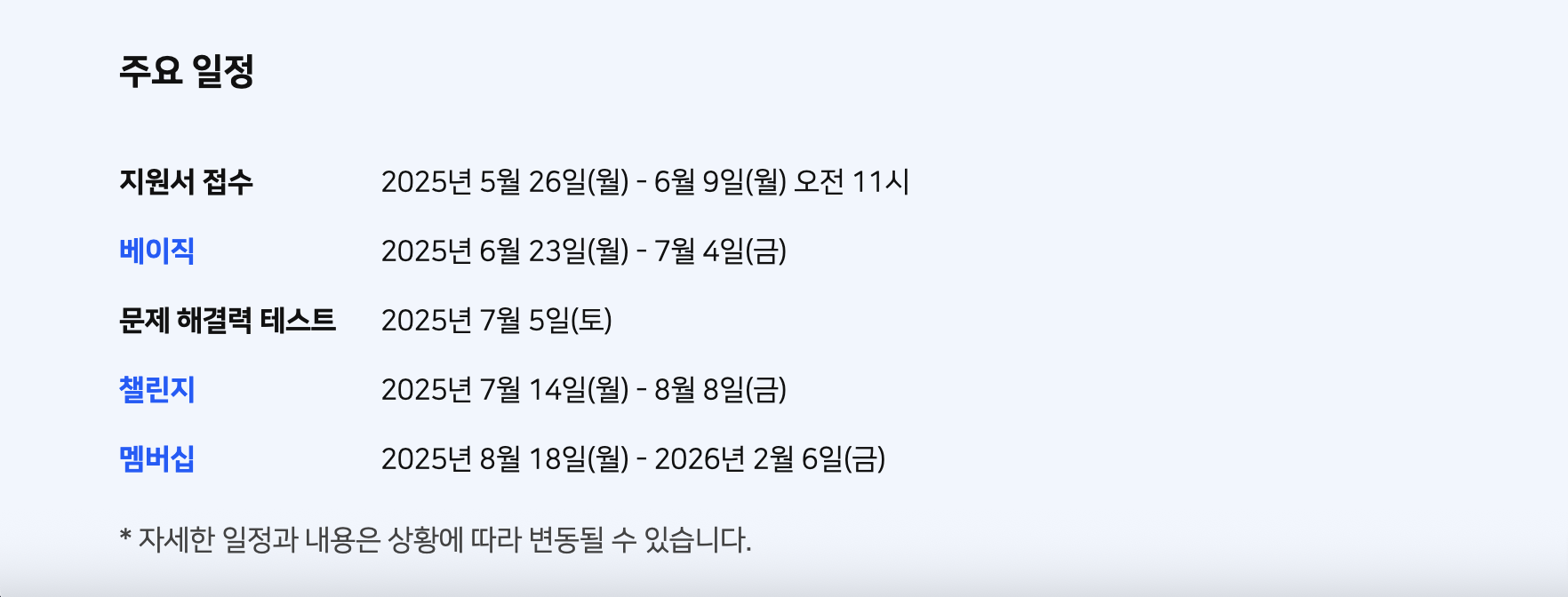 베이직 과정은 온라인으로 2주간, 월~금 총 10일 진행되었다. 매일 오전 10시에 새로운 미션이 공개되고, 당일 자정까지 해당 미션에 대한 체크인이 가능했다(나는 중간에 미션이 밀려서 몇 개 놓쳤다…미션이 점점 어려워졌다 보니😅 다행히 시간이 지나도 미션 제출은 가능했다).